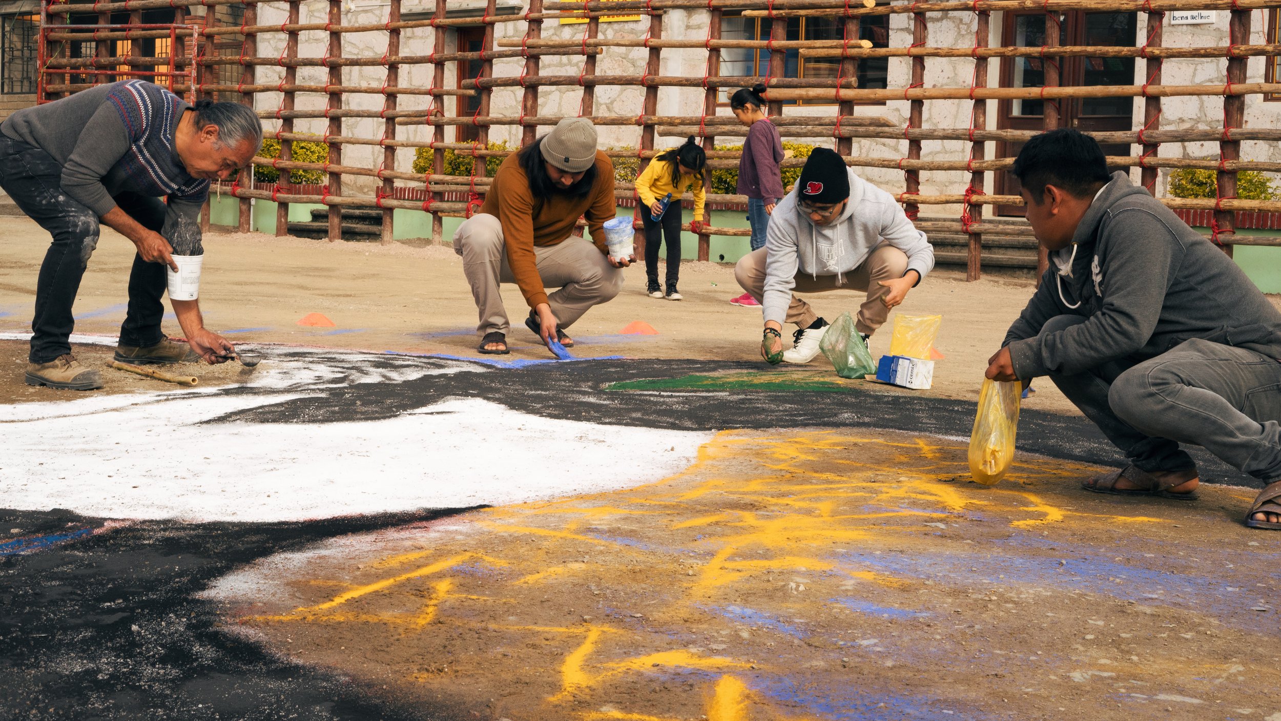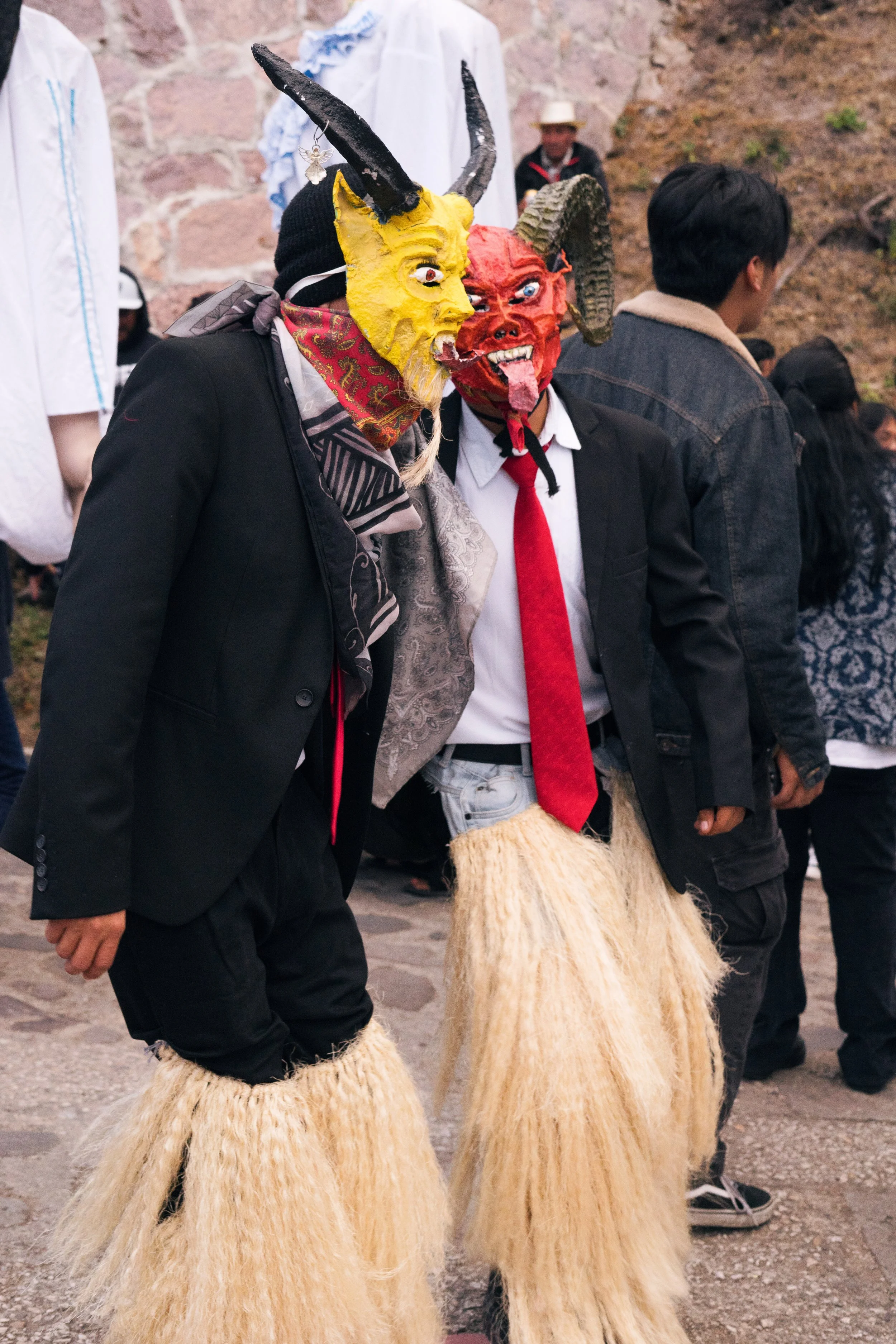 Day3. "Mesa de Jóvenes" a group of young men are assigned this service and are in charge of helping organize important events during the Carnval. They are in charge of the making of the "tepache" that is given out during the festivities. During the calenda they are responsible for dancing with the "marmotas." They also find the people that dress up as clowns on the Sunday of Carnaval. During the jaripeo they pull the bull into bull pen. In this ocassion they painted a "tapete" in the center of the rodeo.